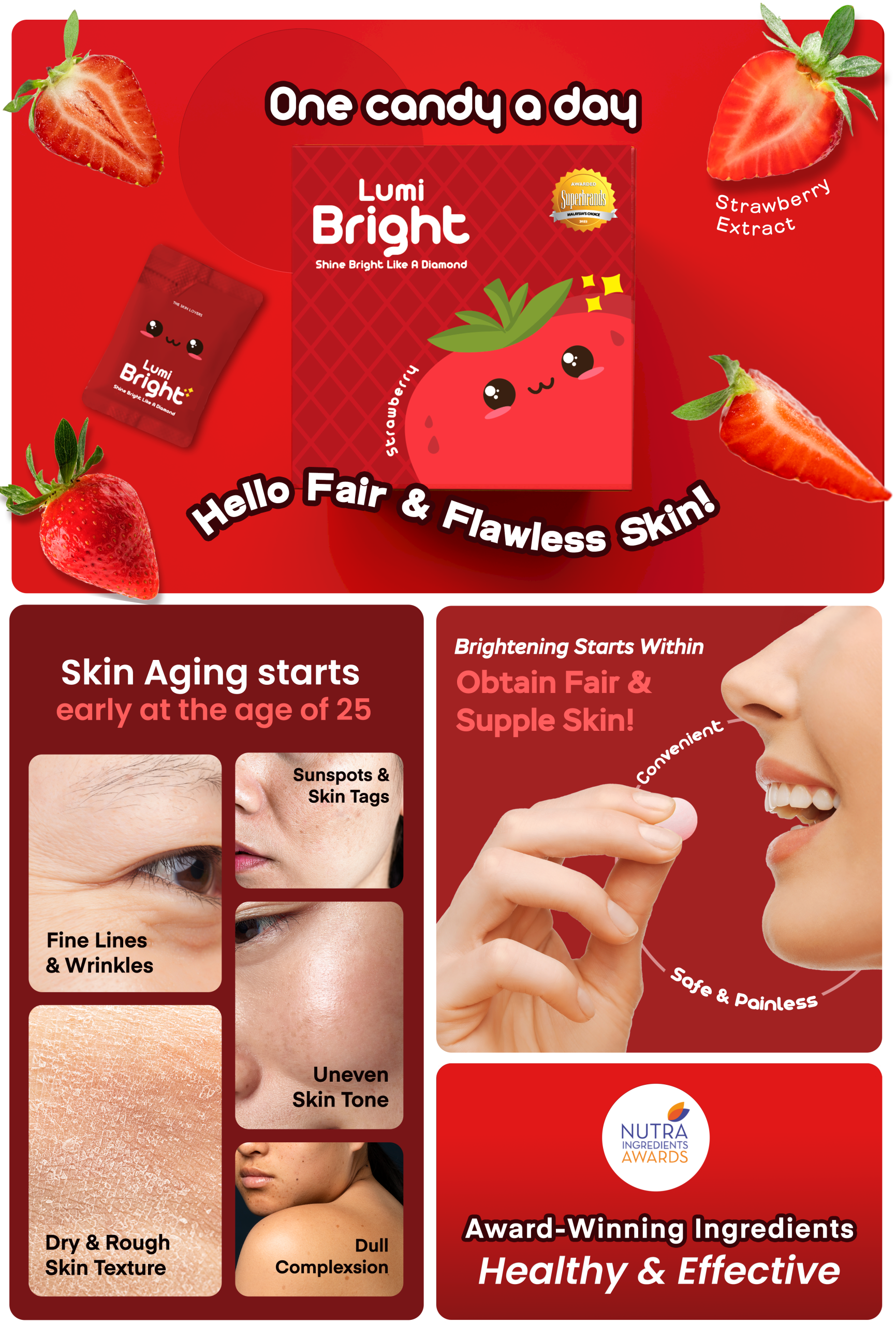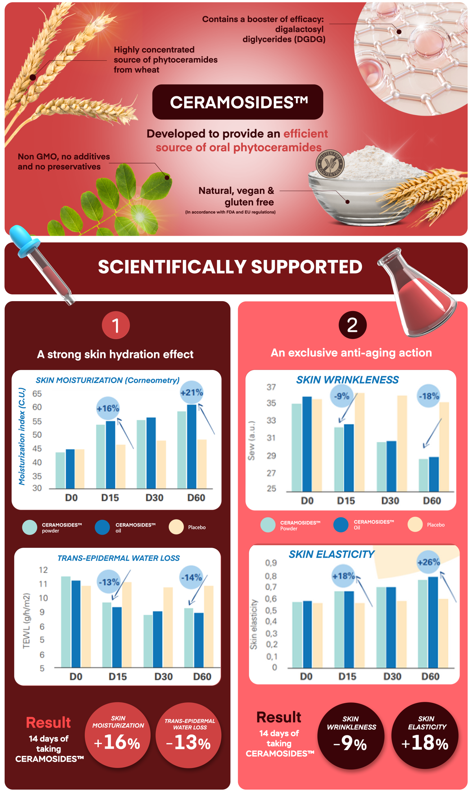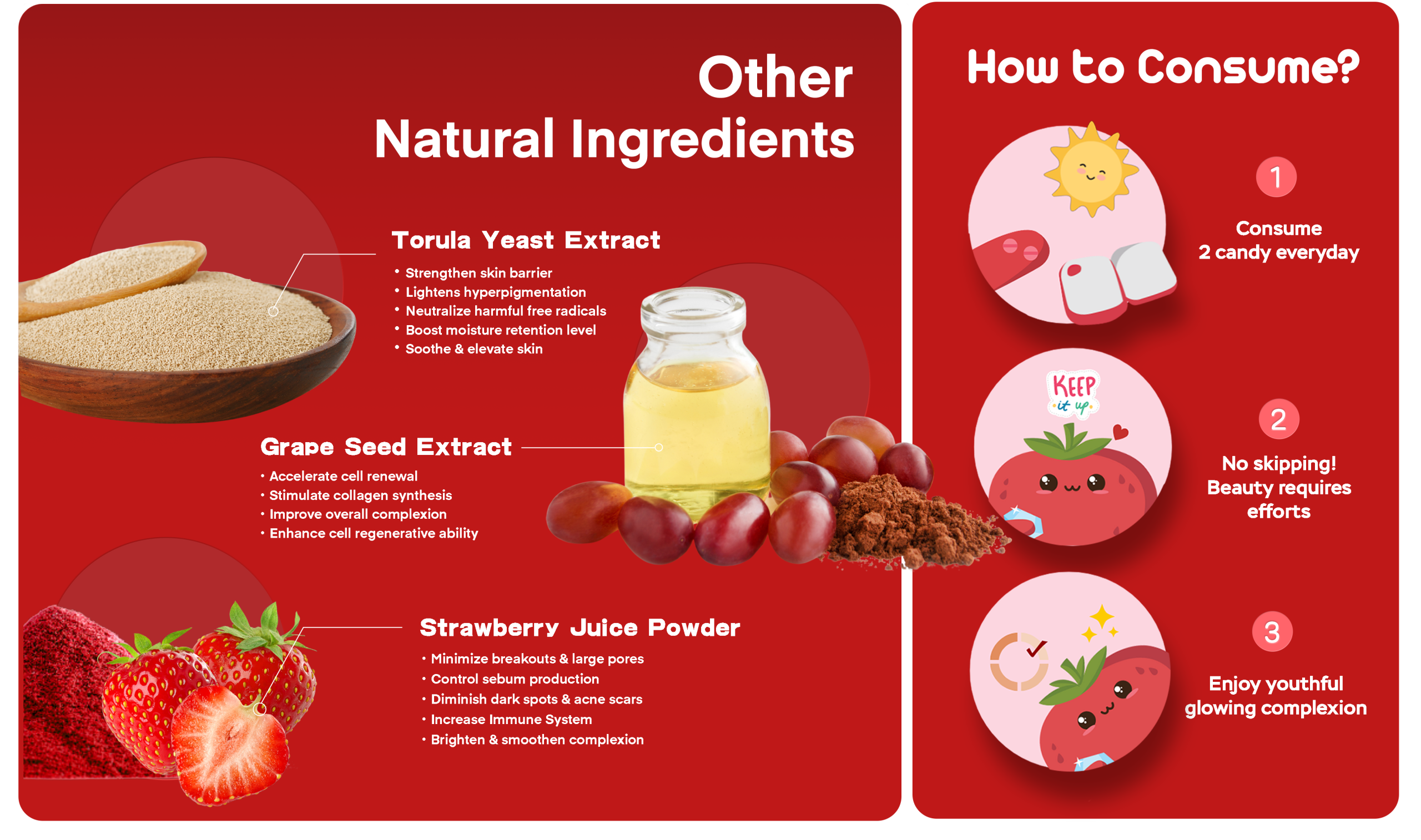 Embrace timeless beauty & achieve dewy youthful complexion with two delicious candy daily. Infused with scientifically proven ingredient, CERAMOSIDES™, reverse skin aging & brighten skin tone by replenishing & restoring lost ceramides, keeping skin moisturized & youthful.